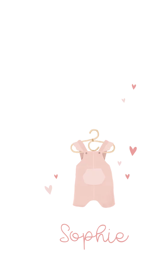 Geboortevlag met geboortepakje voor een meisje met hartjes