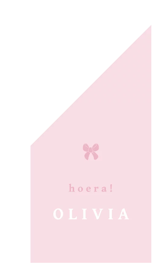 Maak de geboorte van jullie baby bekend met deze geboortevlag met klassiek roze strikje.