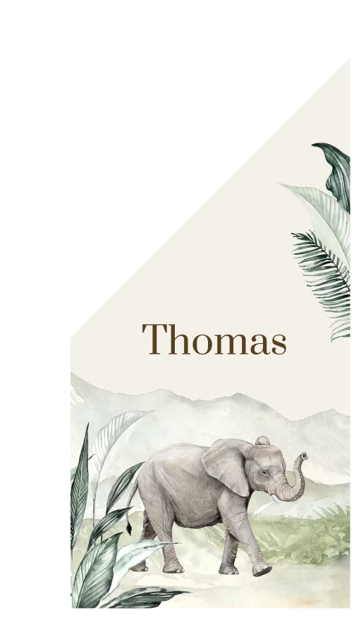 Maak de geboorte van jullie baby bekend met deze avontuurlijke geboortevlag met olifant! Ontwerp je eigen vlag gemakkelijk in onze editor.