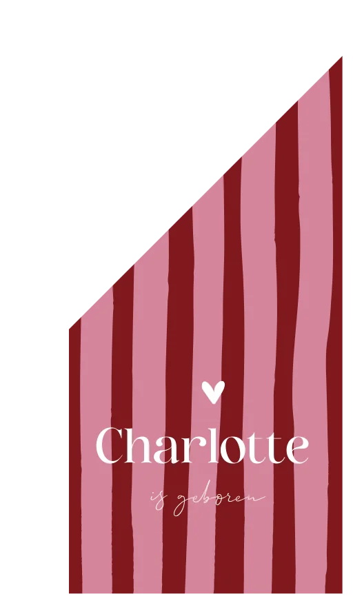 Maak de geboorte van je baby bekend met deze geboortevlag met strepen in rood en roze.