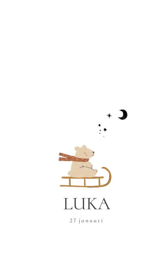 Maak de geboorte van je baby bekend met deze geboortevlag met schattig beertje op een slee.