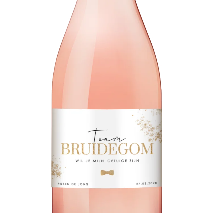 Ben jij team bruidegom of bruid? Vraag je getuigen op een speciale manier met dit wijnetiket, hoe bijzonder!