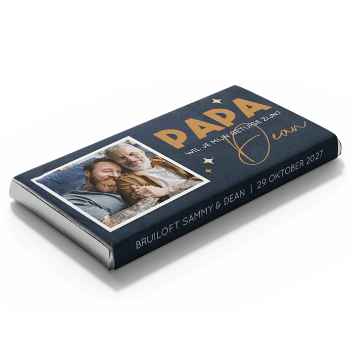 Verras je getuige met deze heerlijke chocoladereep met gepersonaliseerde wikkel!