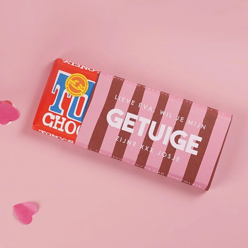 Een gepersonaliseerd cadeau is altijd een goed idee! Verras jouw getuige daarom met deze heerlijke chocoladereep met gepersonaliseerde wikkel.