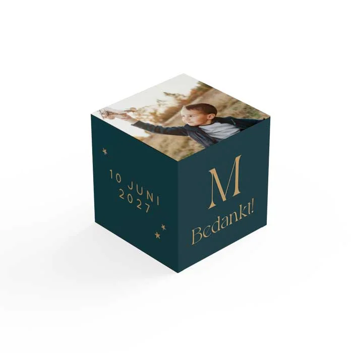 Verras de gasten voor een onvergetelijke dag met dit gepersonaliseerde bedankdoosje! Hoe leuk is dat? Deze doosjes zijn 5 cm hoog, breed en diep én do-it-yourself: ze worden namelijk ongevouwen geleverd.