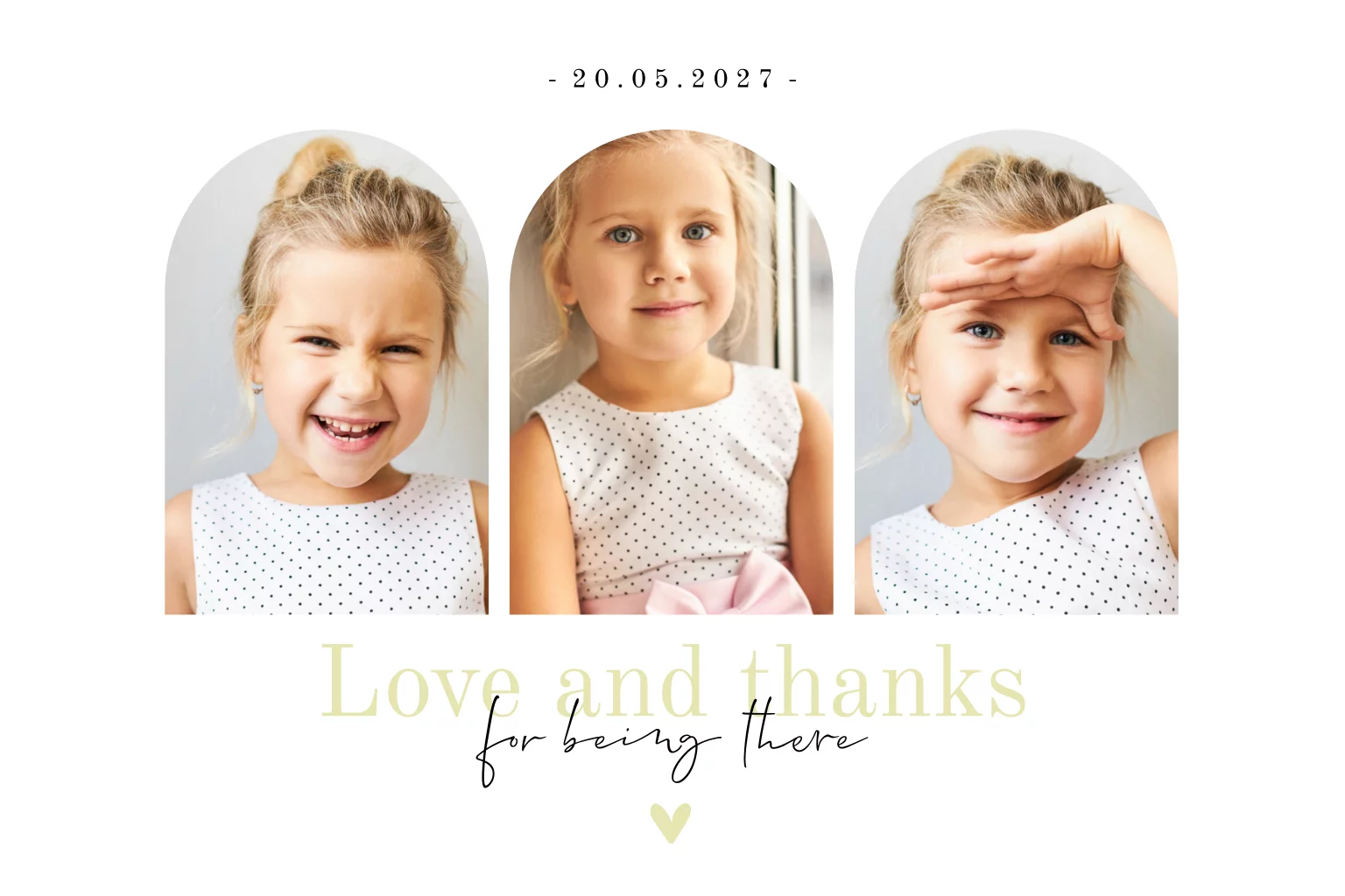 Bedankkaart met drie kaders en eigen foto's