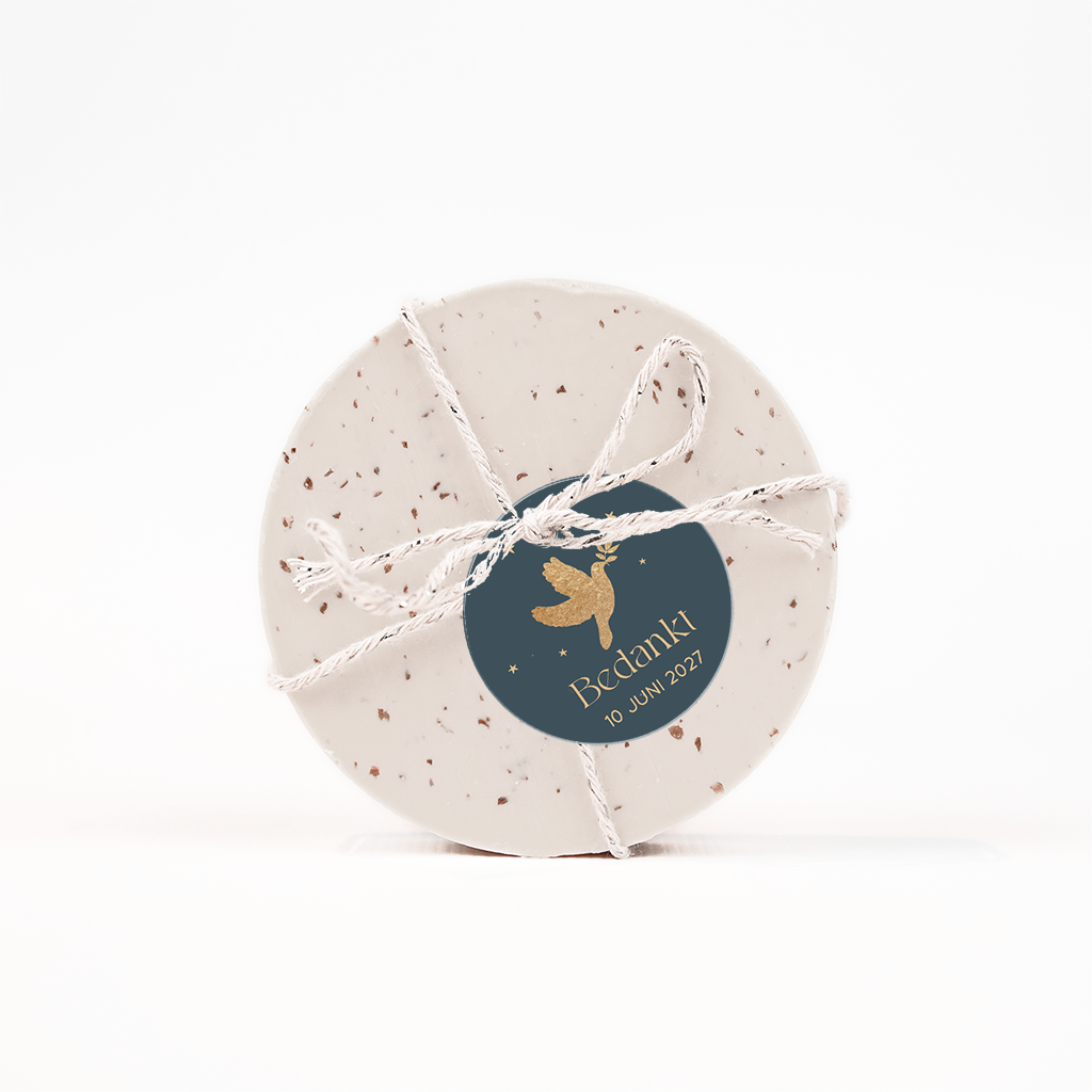 Blauw labeltje met gouden duif en letters | 16 stuks