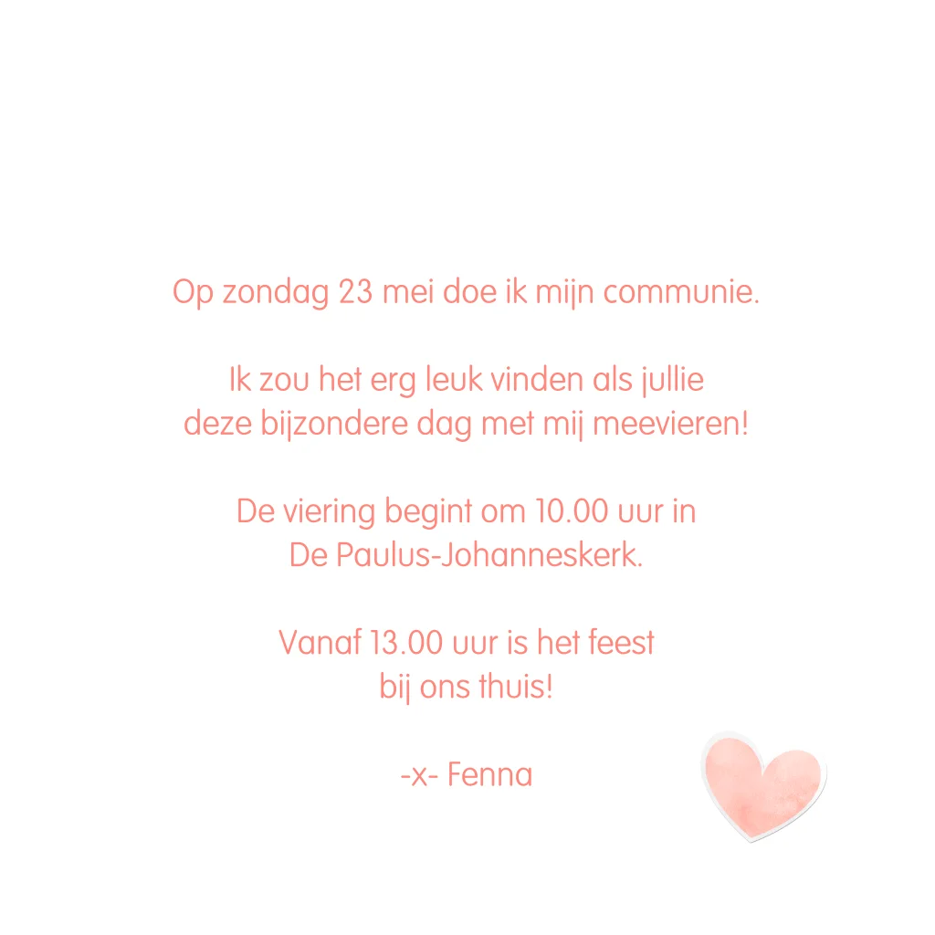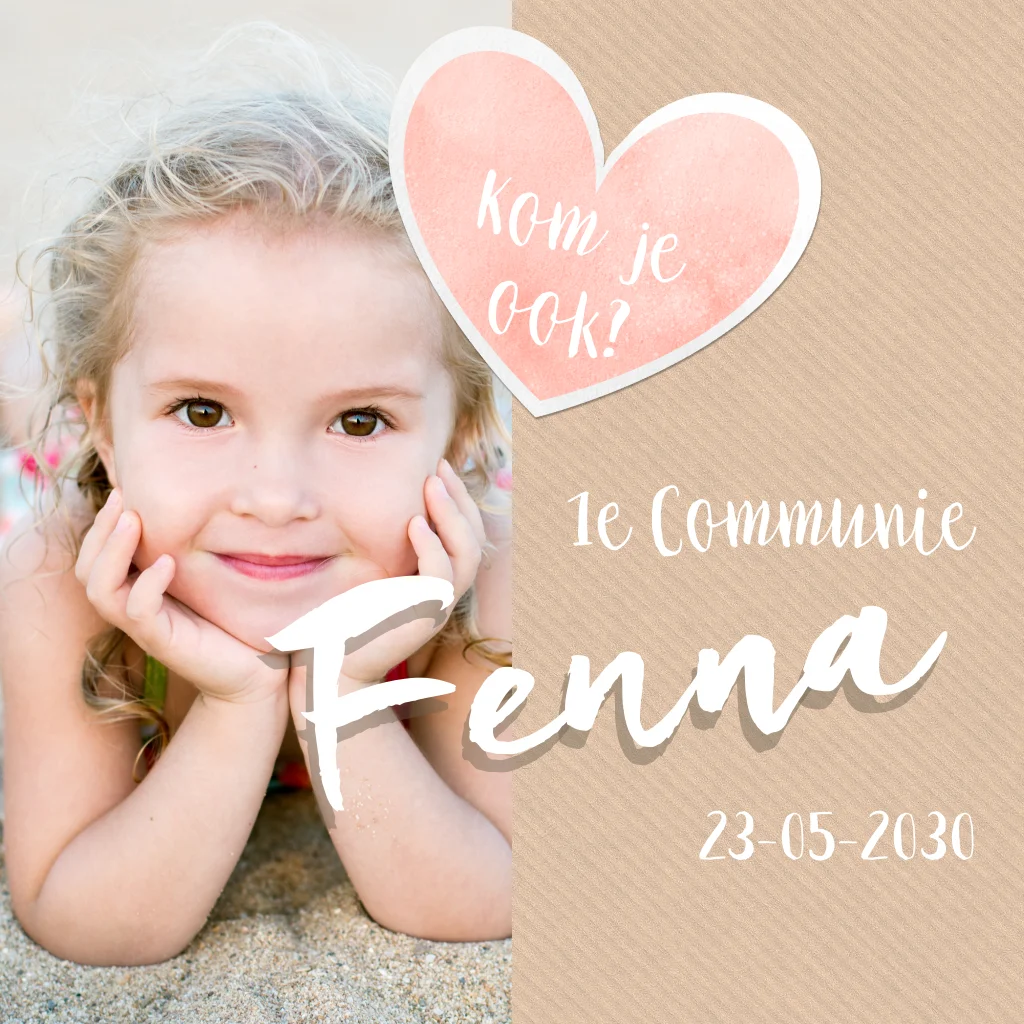 Communie uitnodiging meisje met hartje en foto
