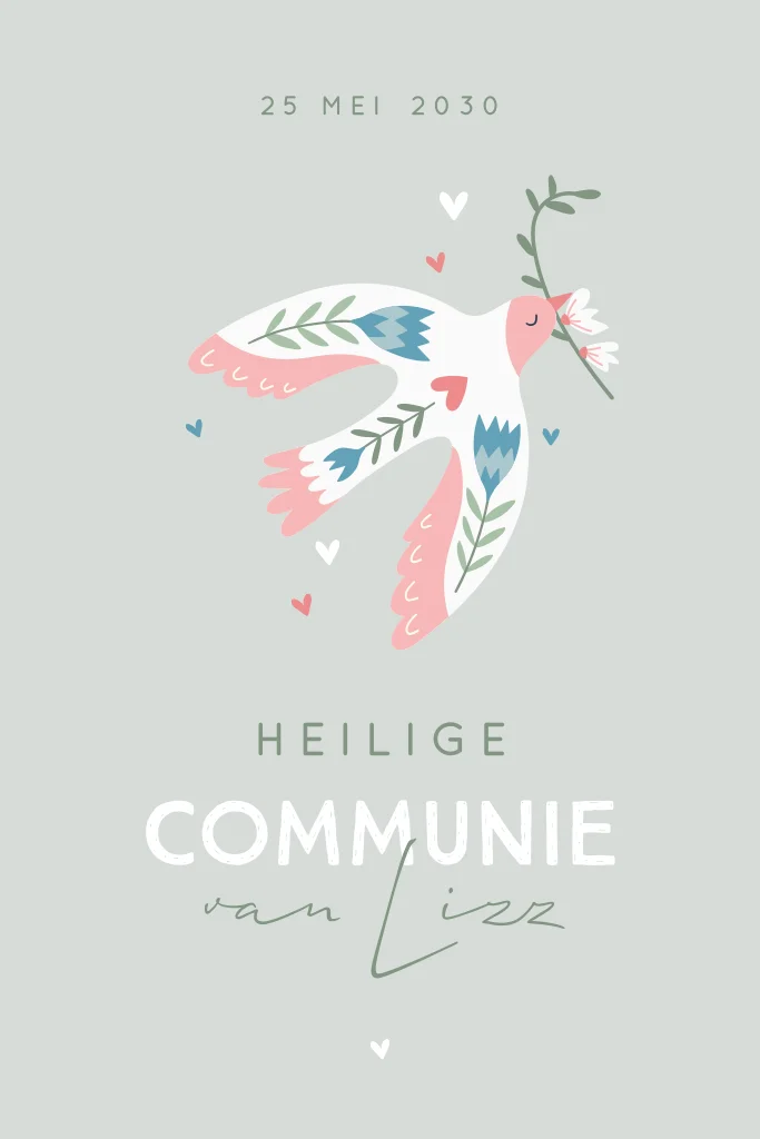 Nodig vrienden en familie uit voor de Communie van jouw dochter met dit stijlvolle kaartje.