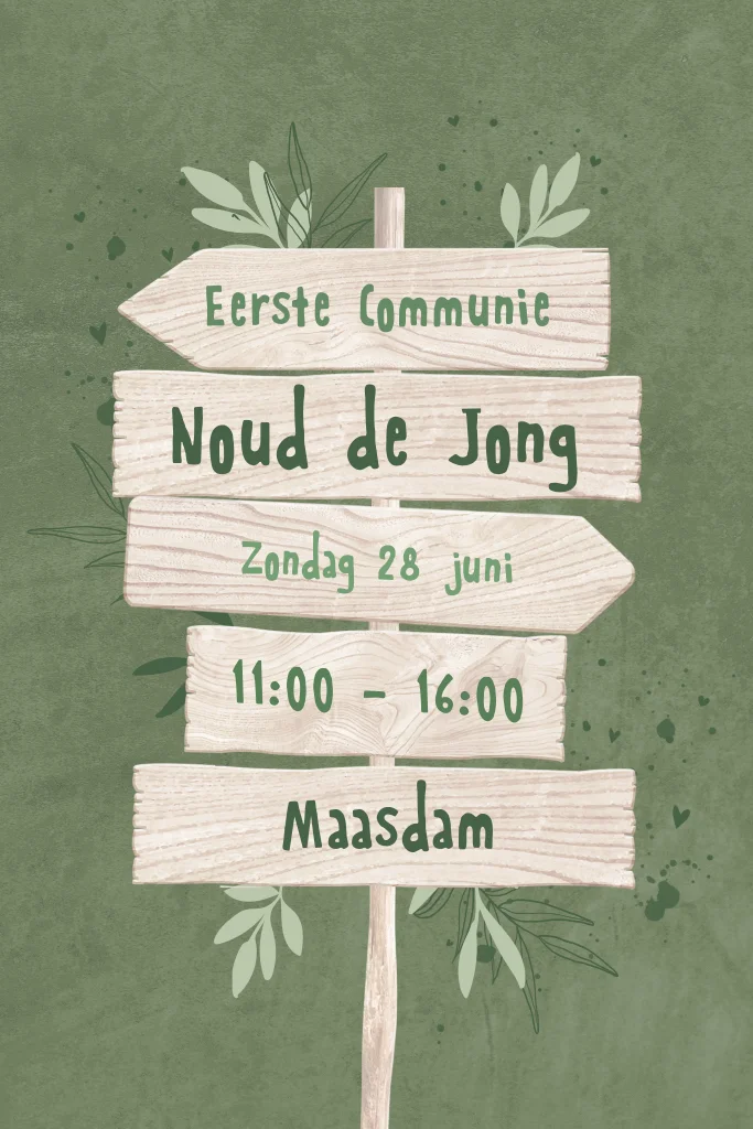 Uitnodiging communie in groen met wegwijzer