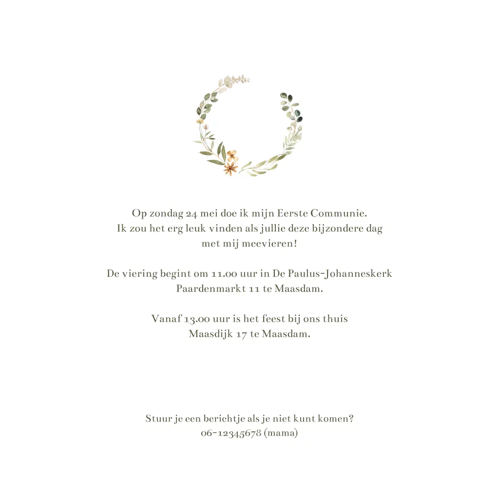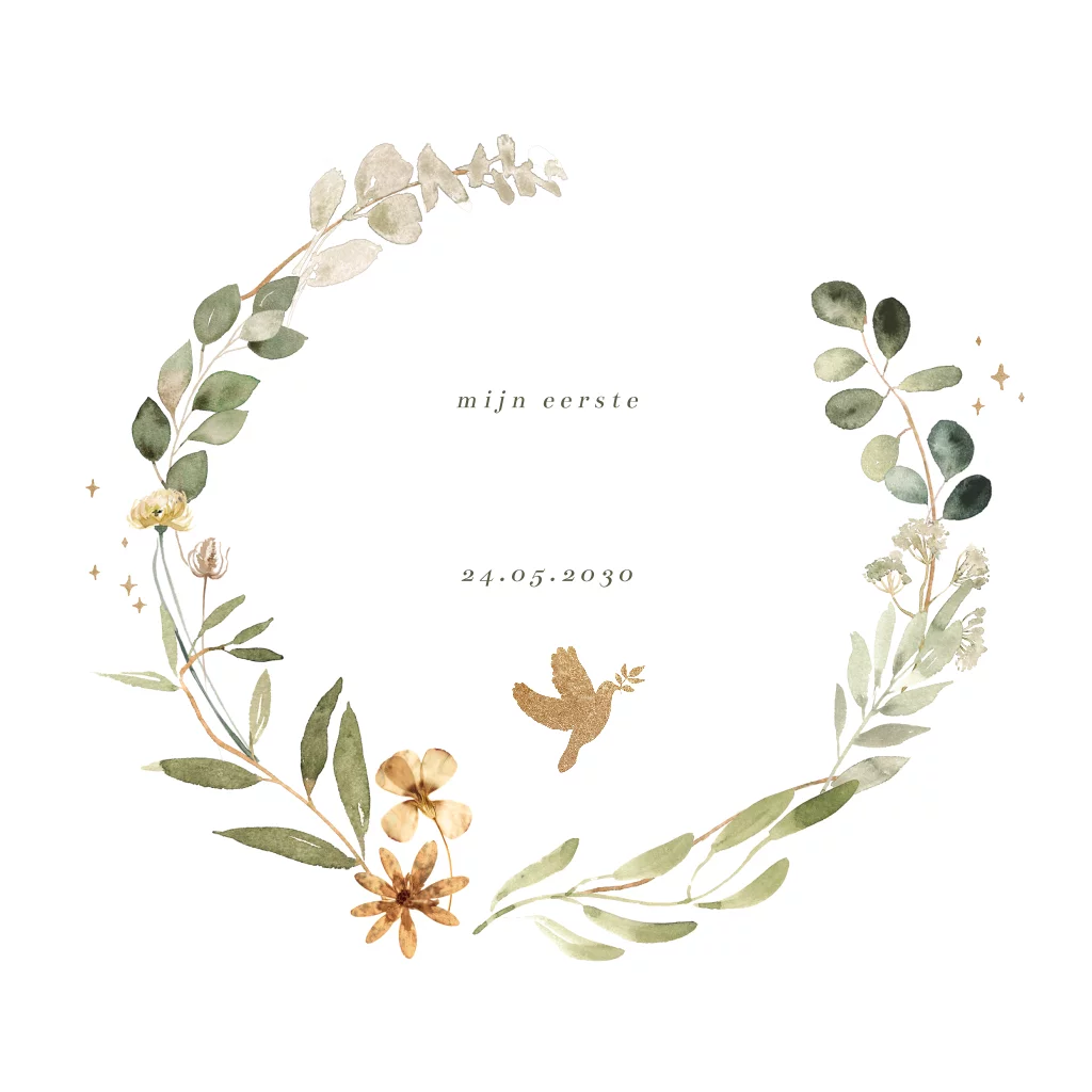Op zoek naar een stijlvolle uitnodiging voor de Eerste Communie? Ga voor dit design met ruimte voor een eigen foto aan de binnenkant van de kaart.