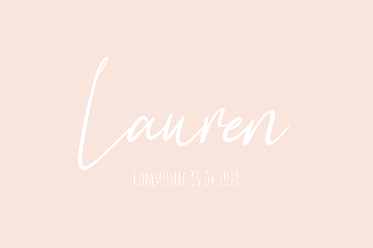 Een lichtroze communie uitnodiging in minimalistische stijl. De naam wordt gedrukt in mat goudfolie. Pas het ontwerp eenvoudig aan in de online editor.