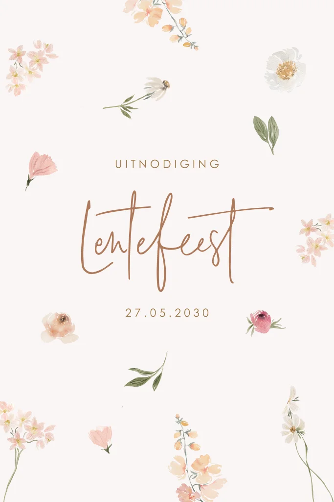 Uitnodiging voor lentefeest met bloemenontwerp. Personaliseer naar wens met onze online editor.