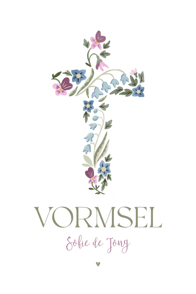 Vormsel uitnodiging met een kruis van bloemen