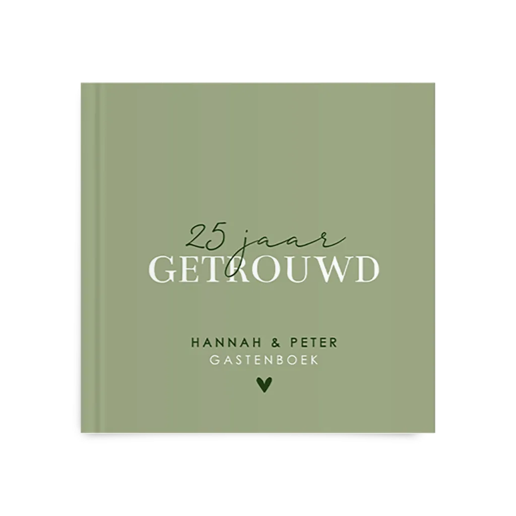 Gastenboek 25 jarig huwelijksjubileum in groen met hartje