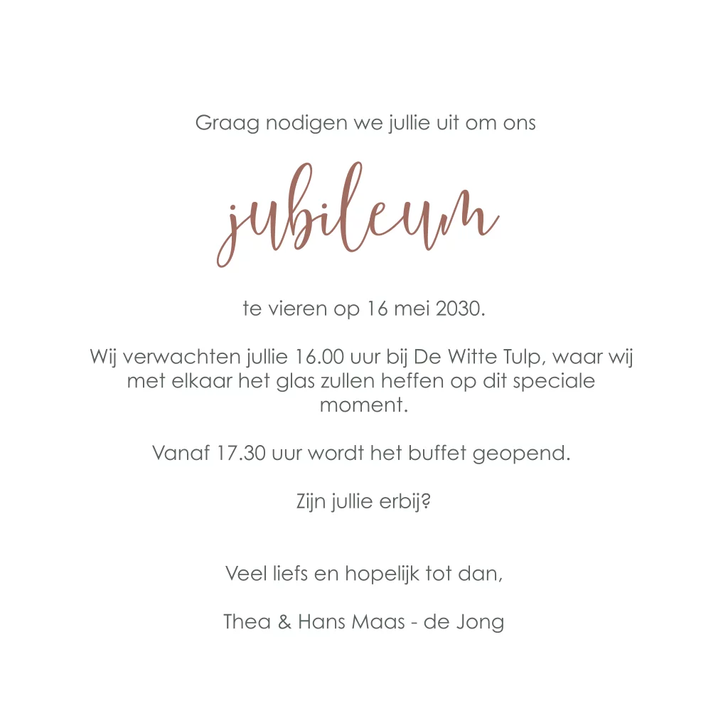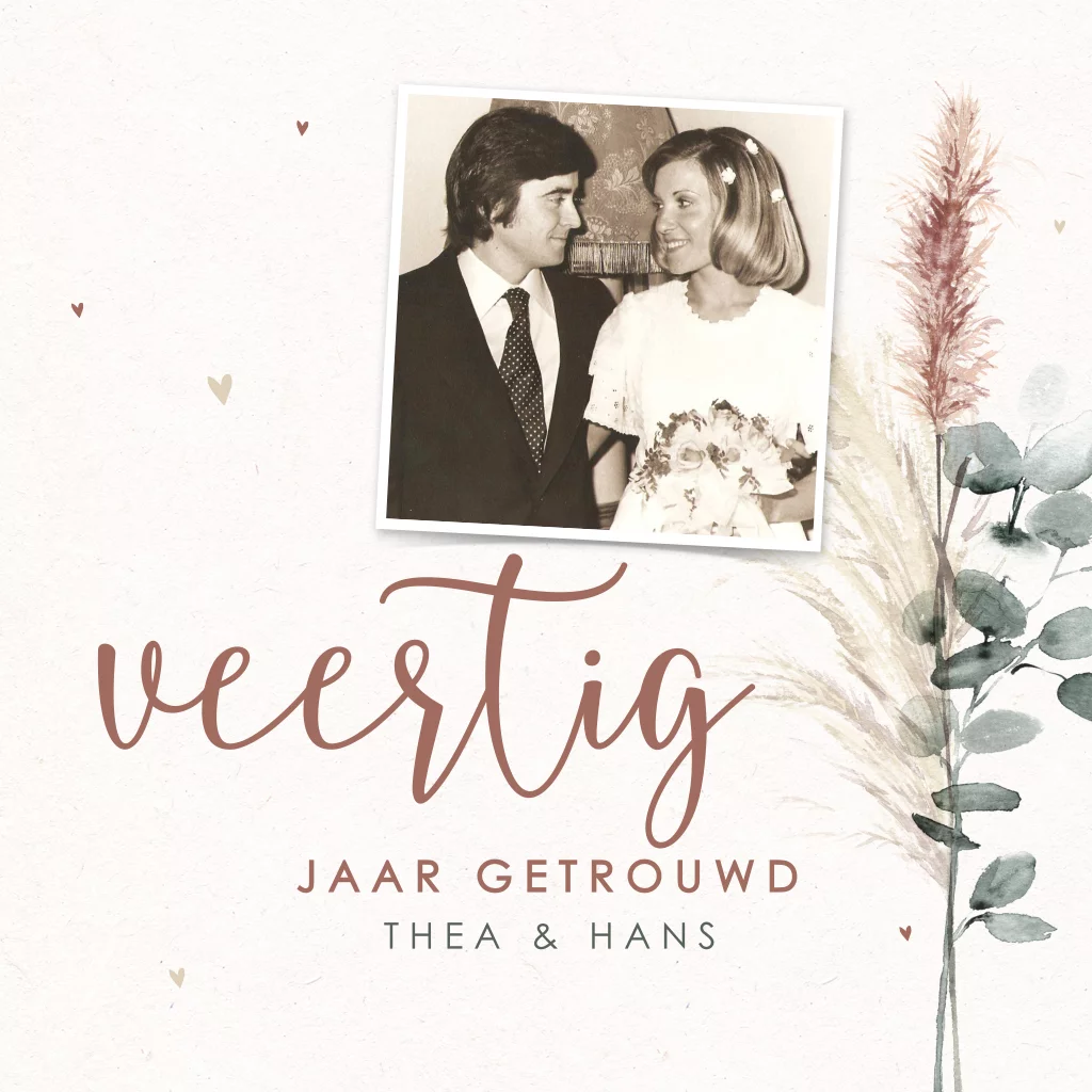 Uitnodiging robijnen huwelijk met stijlvolle droogbloemen. Met jullie trouwfoto maak je eenvoudig jullie persoonlijke uitnodiging.