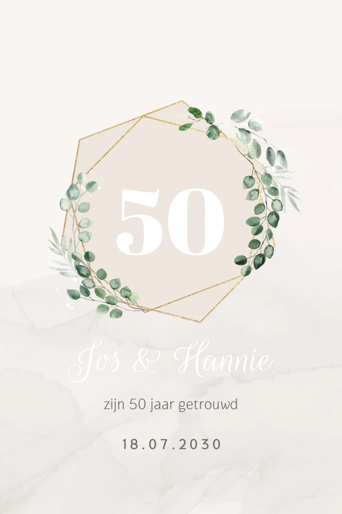 Originele jubileumkaart 50 jaar getrouwd met goudfolie.Mooi op linnen papier.