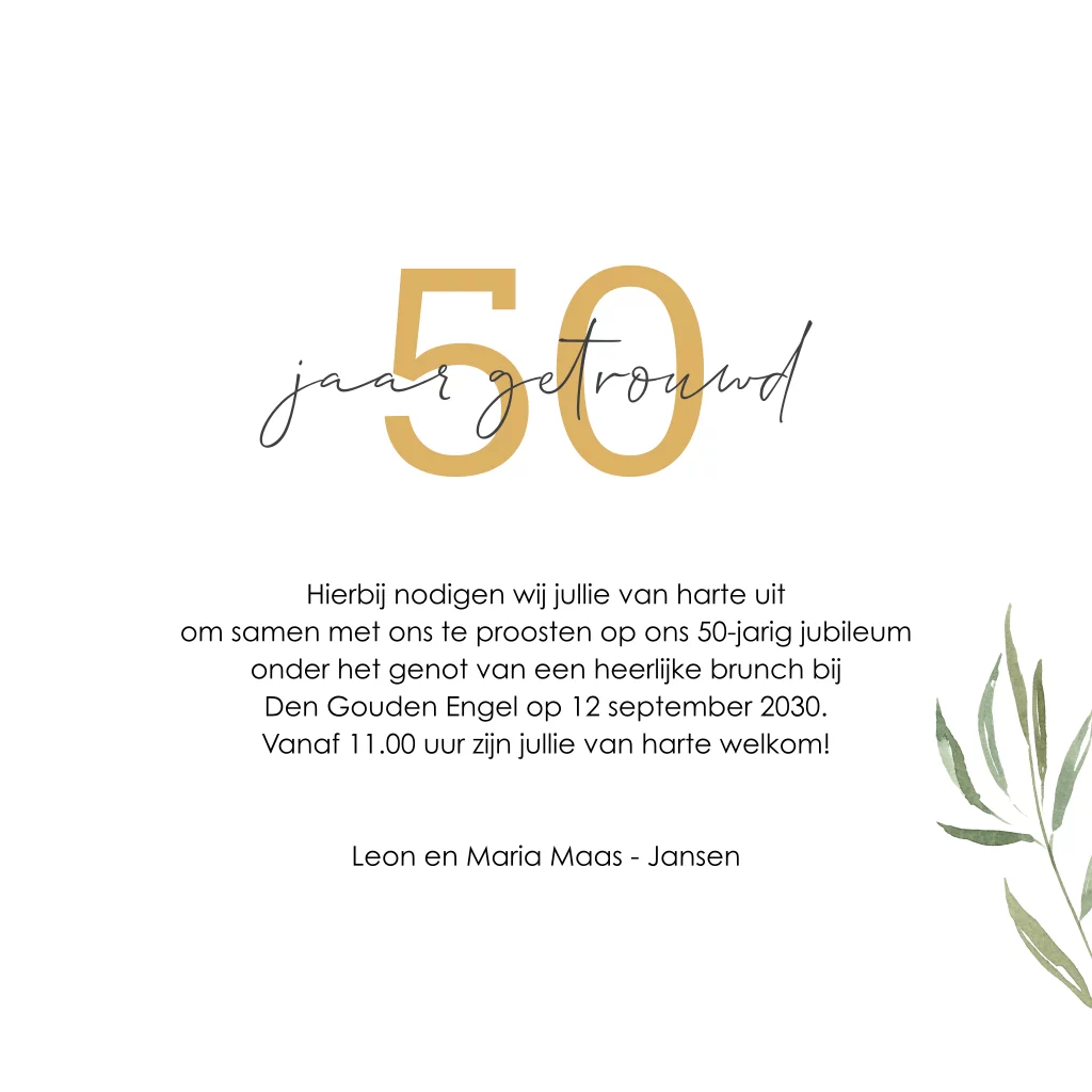 Jubileum uitnodiging gouden bruiloft