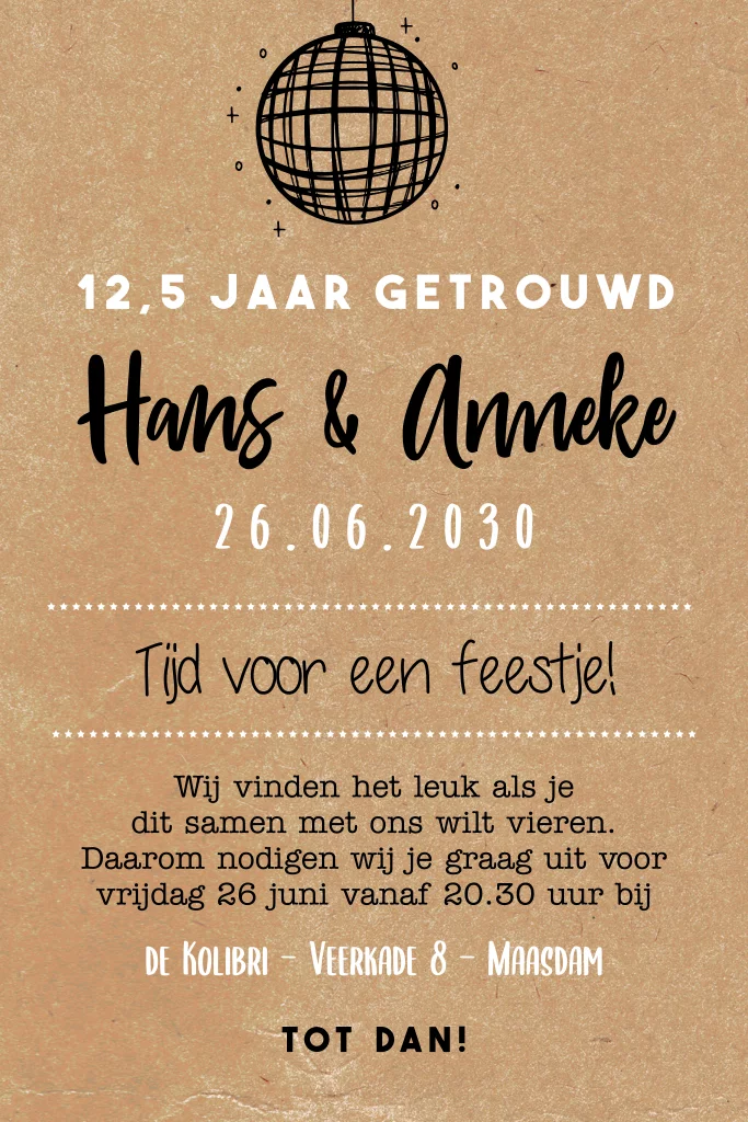 Jubileum uitnodiging 12,5 jaar getrouwd met kraft look