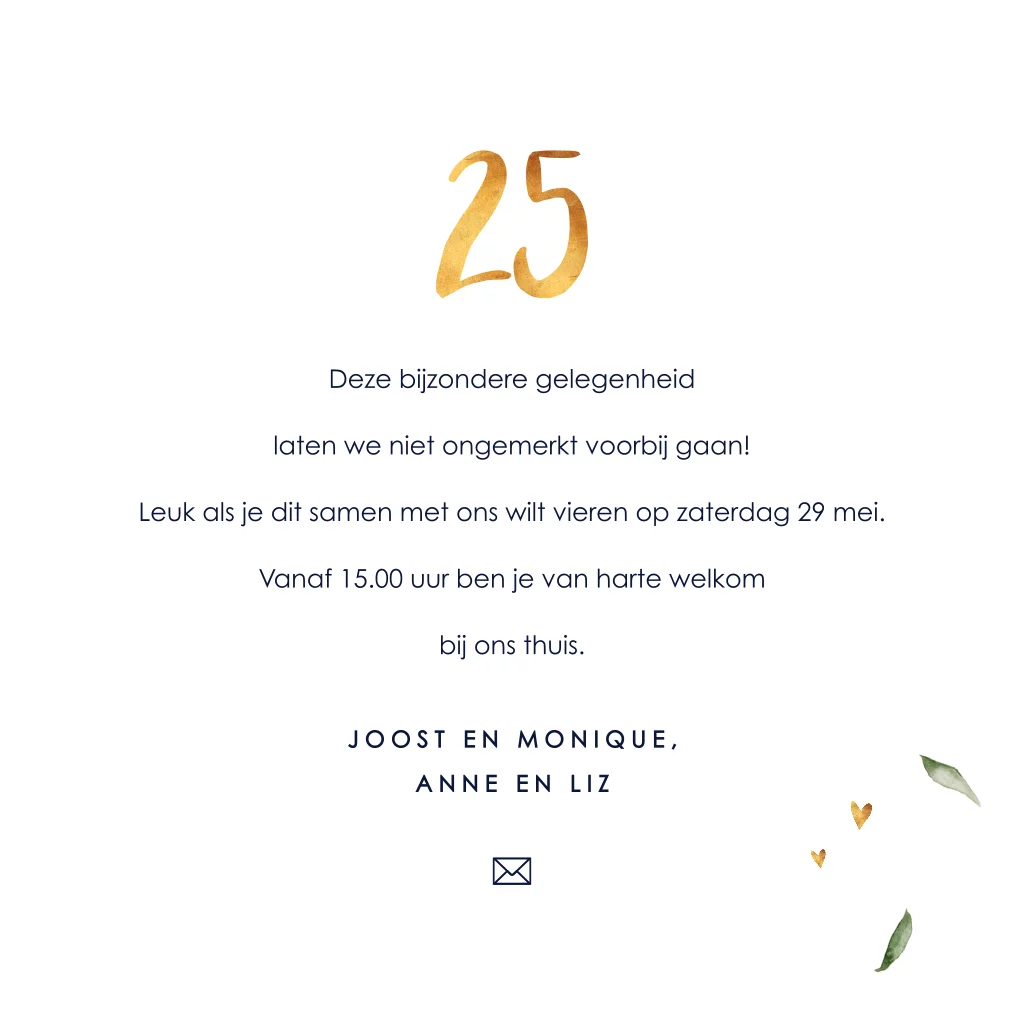 Botanische uitnodiging huwelijksjubileum met foto en gouden 25