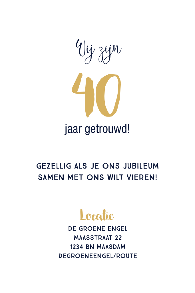 Uitnodiging voor een huwelijksverjaardag met vrolijke lettertypes. Deze zijn geheel naar jullie persoonlijke tekst aan te passen.