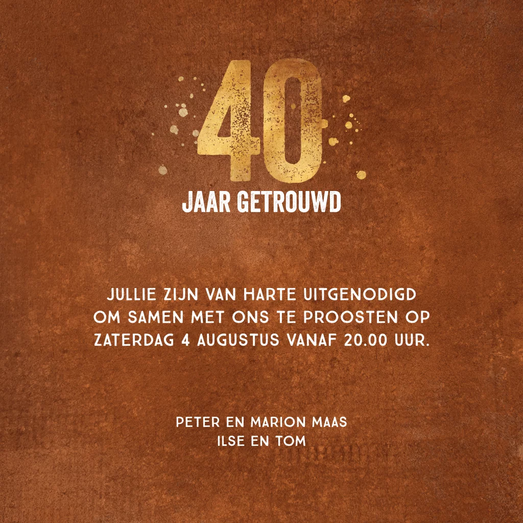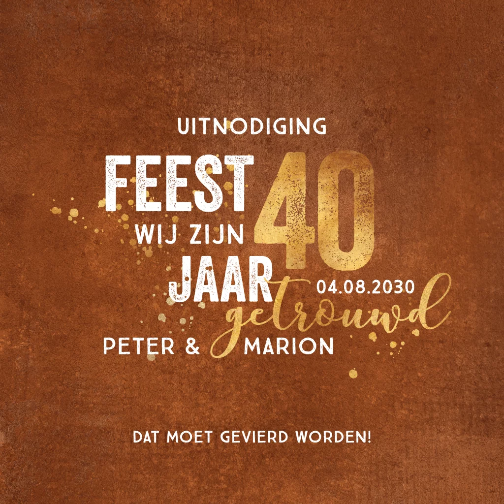 Feestelijke jubileumkaart 40 jarig huwelijk in roestbruine kleur met spetters in goud look.