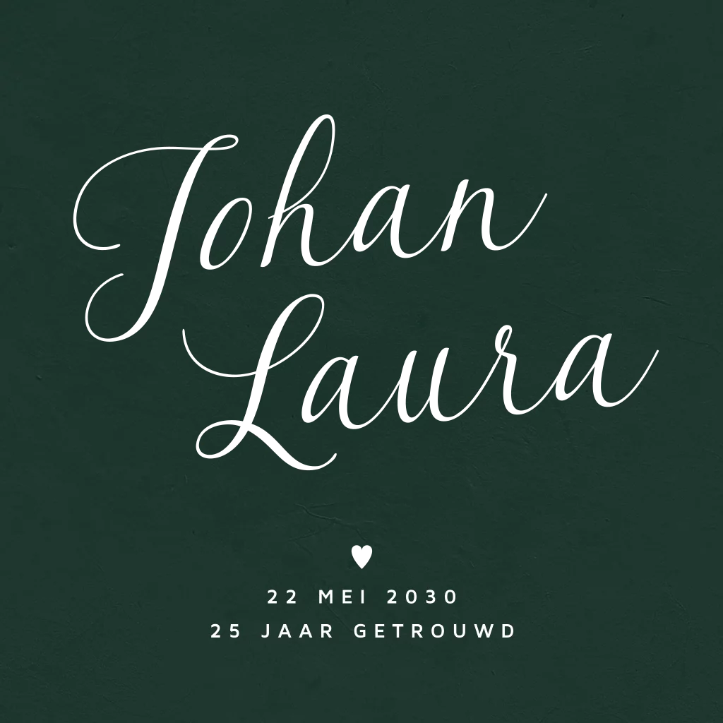 Jubileumkaart klassiek en clean met een mooie donkergroene achtergrond gecombineerd met zilverfolie op beide zijdes van het ontwerp, passend bij het 25-jarig jubileumjaar.