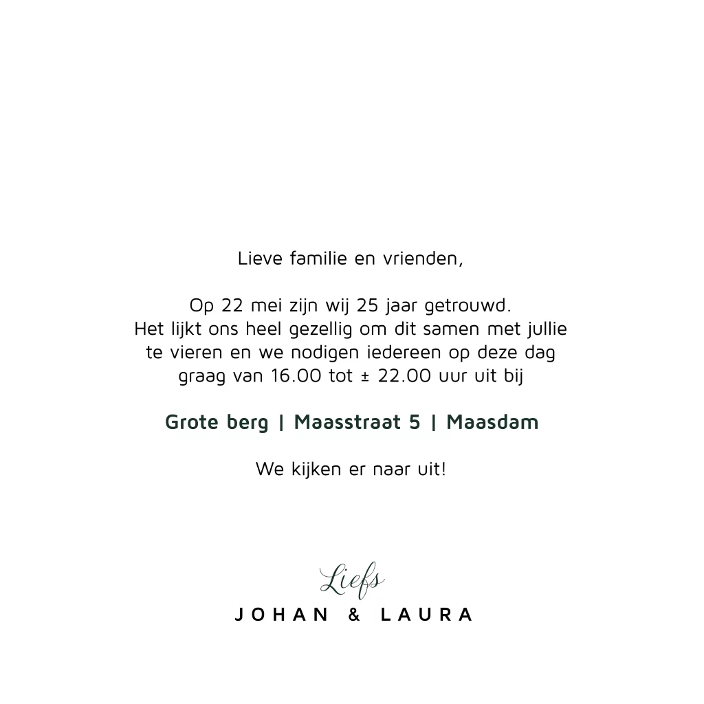 Jubileum uitnodiging 25 jaar met zilverfolie