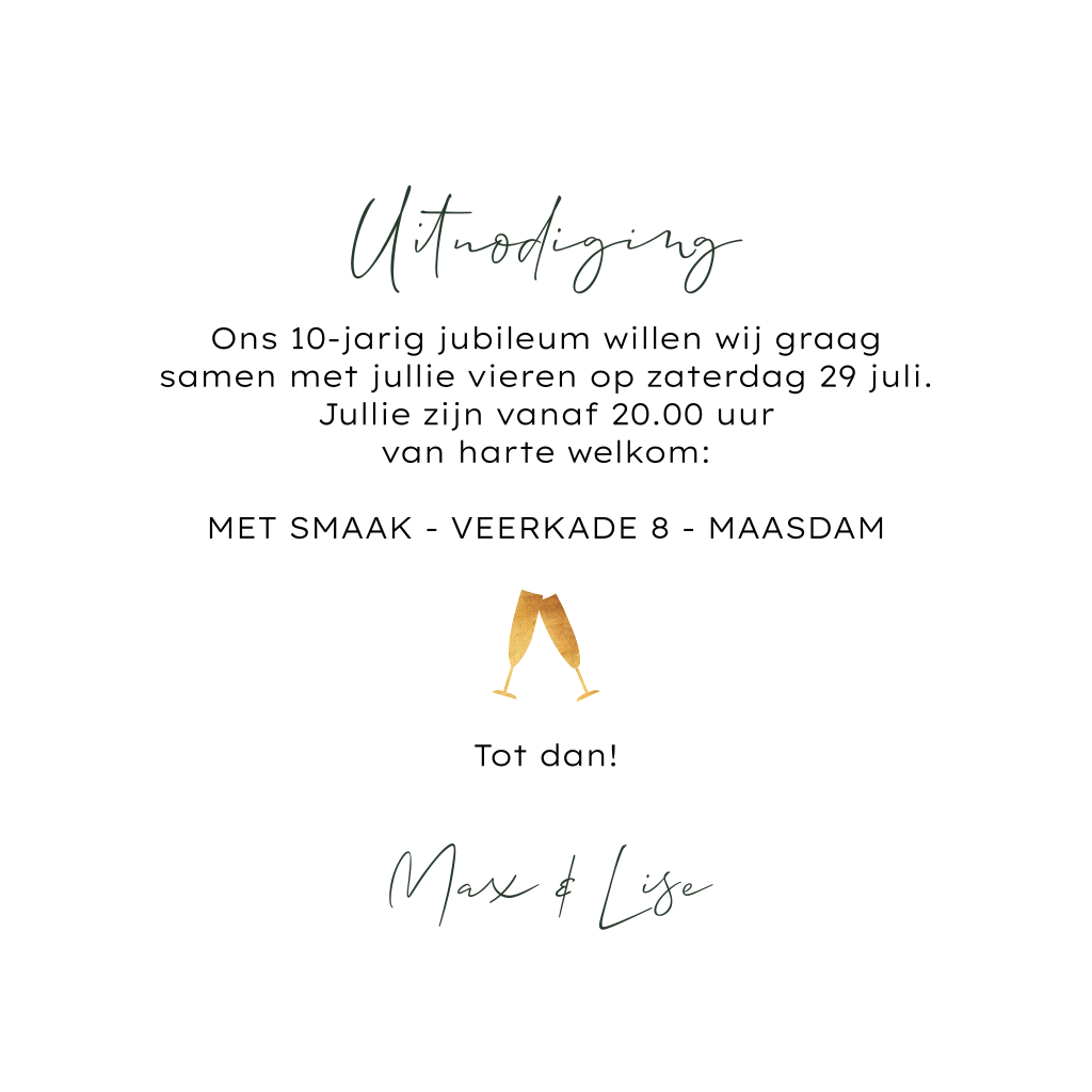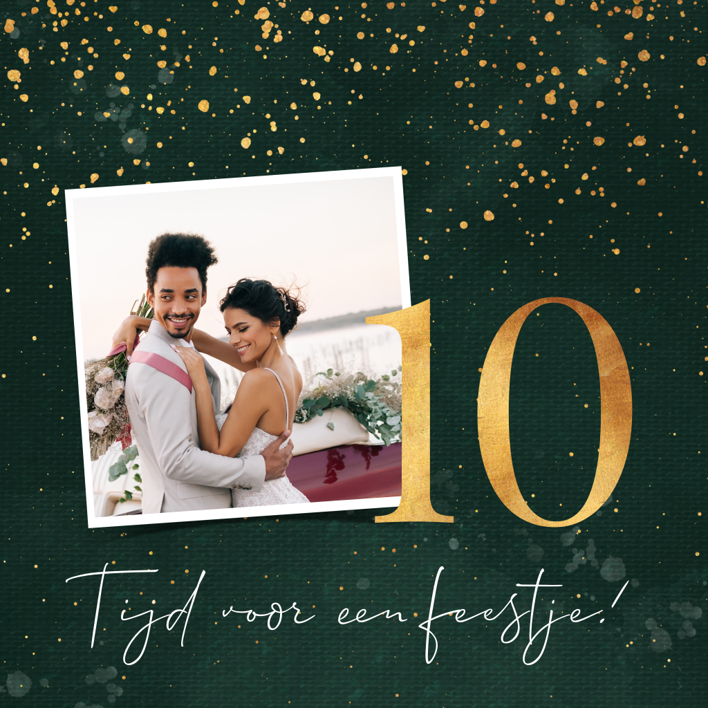 Uitnodiging 10 jarig jubileum met gouden confetti