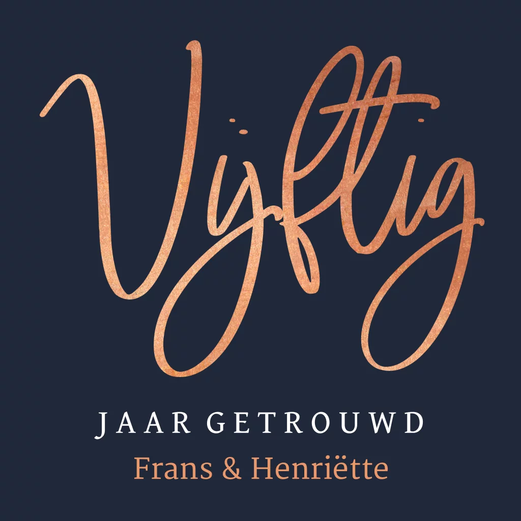 Uitnodiging gouden bruiloft met donkerblauw en brons