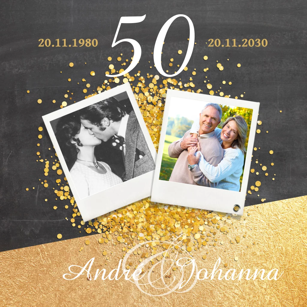 Jubileumkaart vijftig jaar met gouden confetti