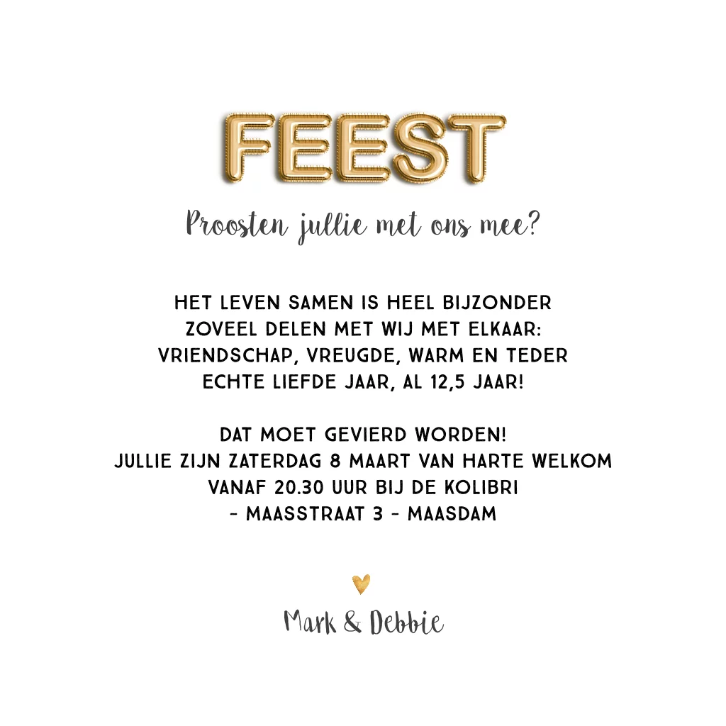 Uitnodiging 12,5 jaar getrouwd met wegwijzer