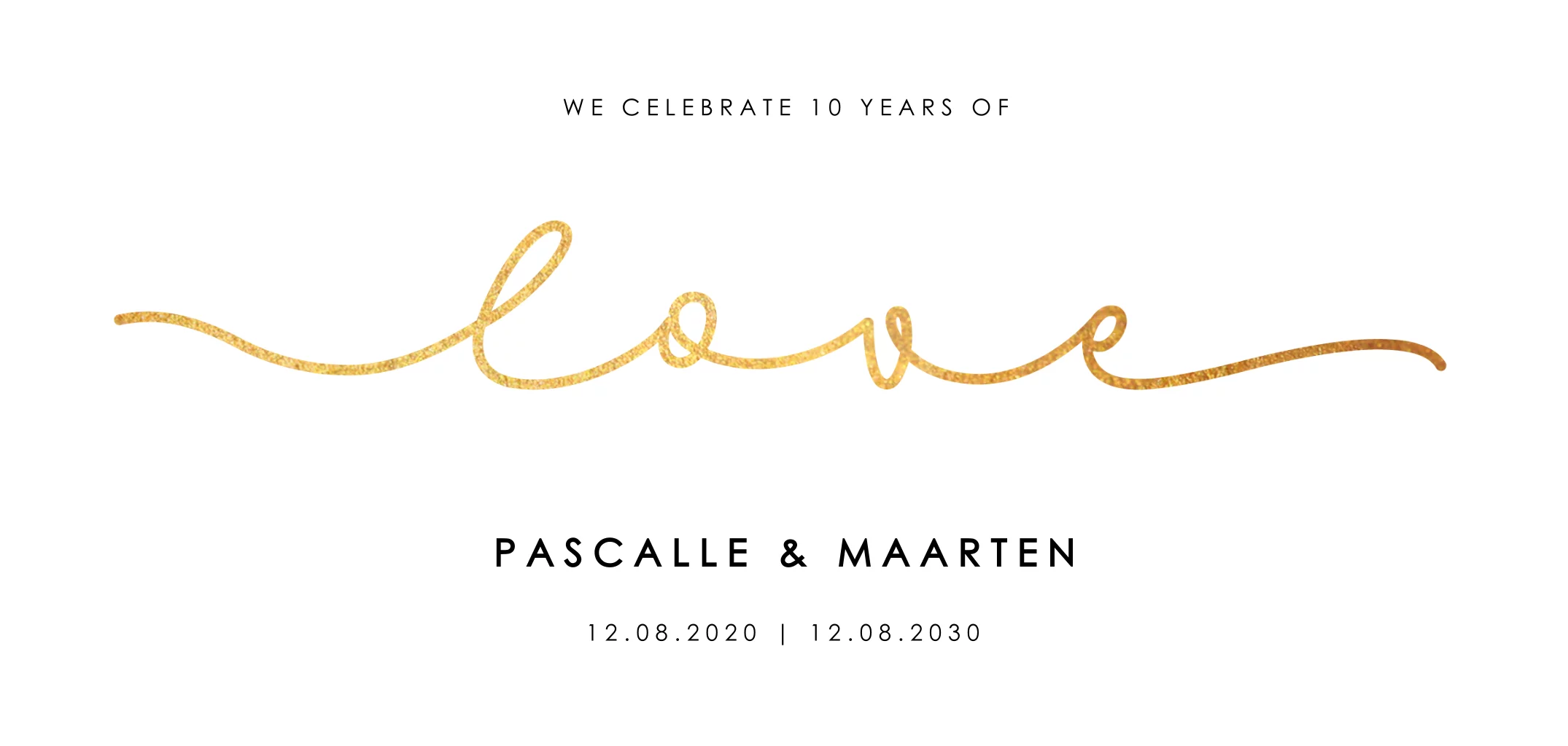 Uitnodiging 10 jaar getrouwd clean wit met goud