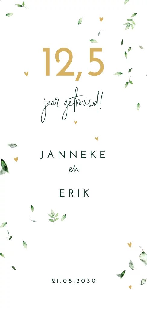 Uitnodigingskaart 12,5 jarig jubileum met blaadjes