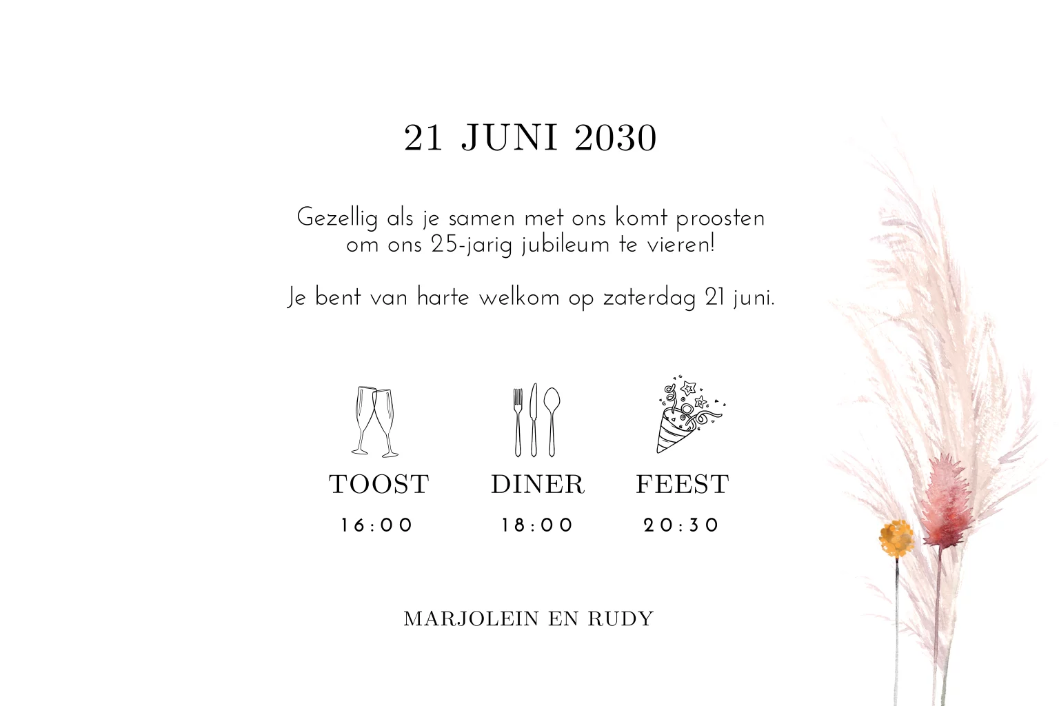 Uitnodiging 25 jaar met droogbloemen