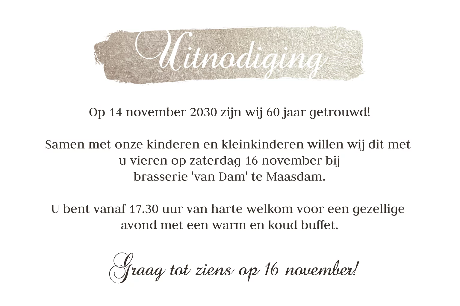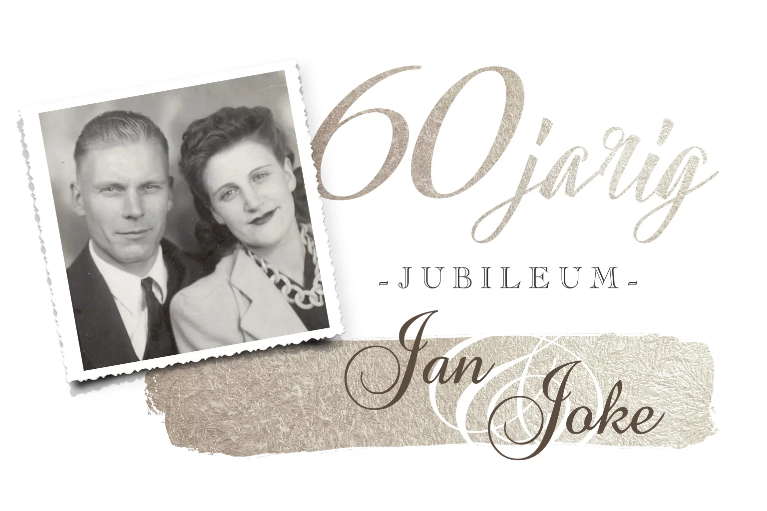 Chique uitnodiging voor jullie 60 jarig huwelijksfeest met een foto van vroeger.
