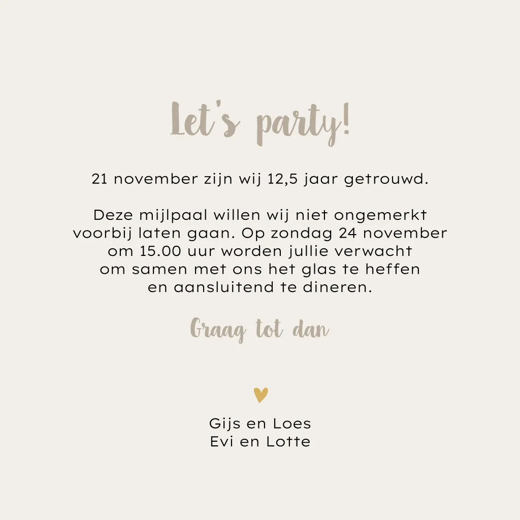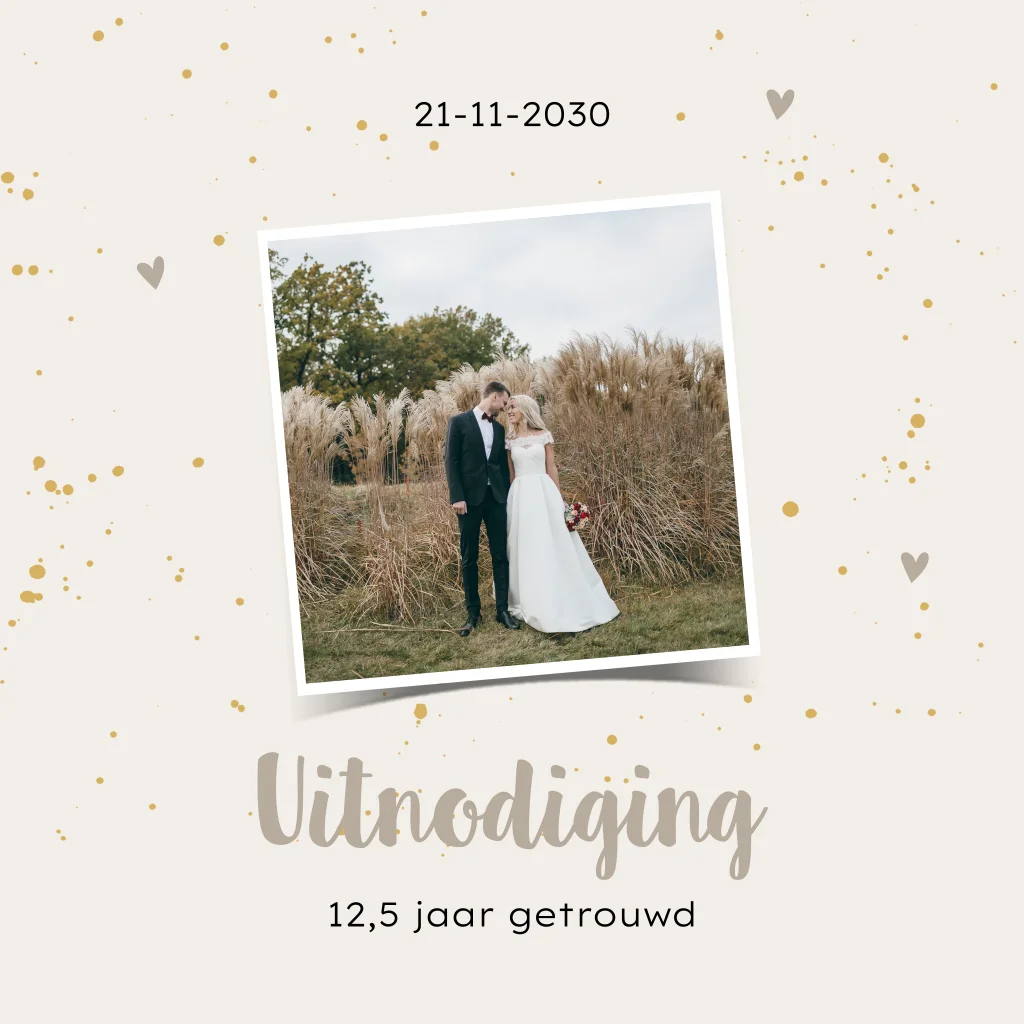Een mooie uitnodigingskaart voor een 12,5 jarig jubileum. Feestelijk met spetters!
