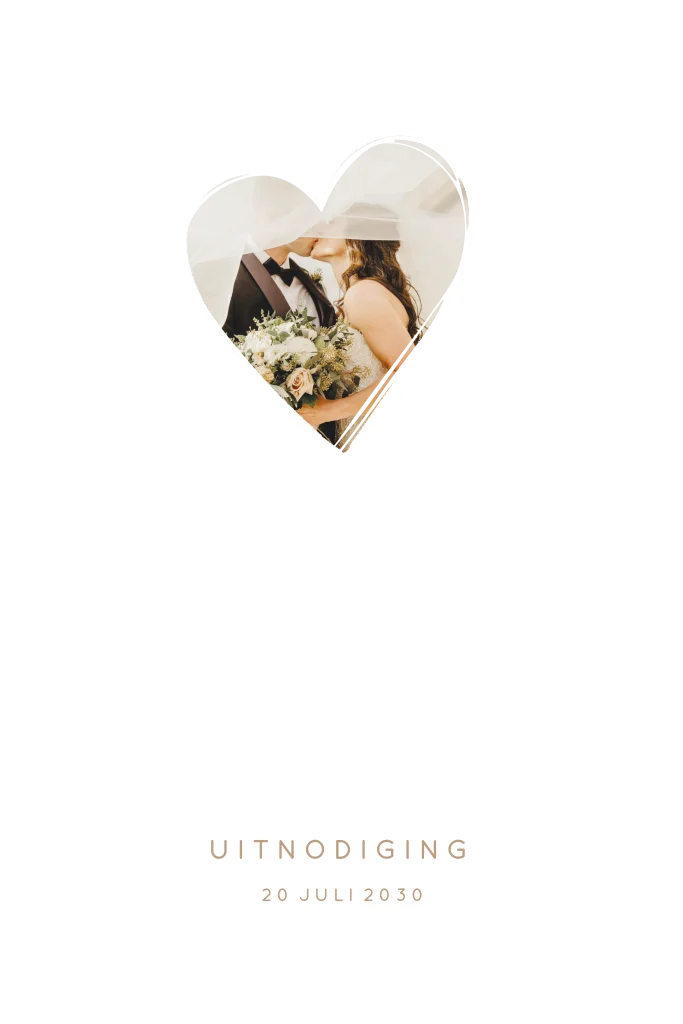 Uitnodiging 25 jaar getrouwd met foto in hart en mat goudfolie