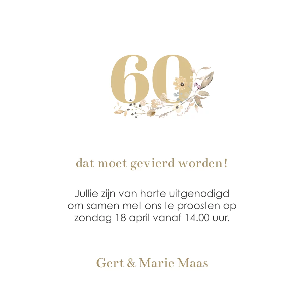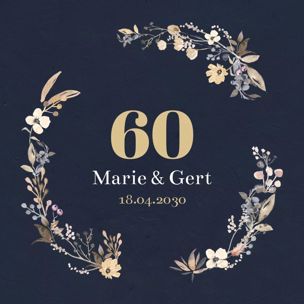 Jubileum uitnodiging 60 jaar getrouwd stijlvol met een bloemenkrans.