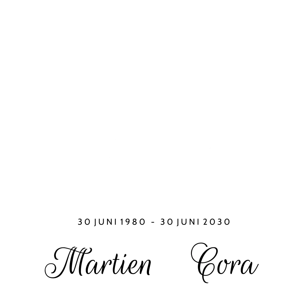 Stijlvolle uitnodigingen voor een 50 jarig huwelijksjubileum. Met sierlijke lettertypes en aan de binnenkant vrolijke icoontjes. Het bijzondere aan deze kaart is dat de gouden elementen worden gedrukt met echt goudfolie. Dat geeft een luxe uitstraling aan de uitnodiging.