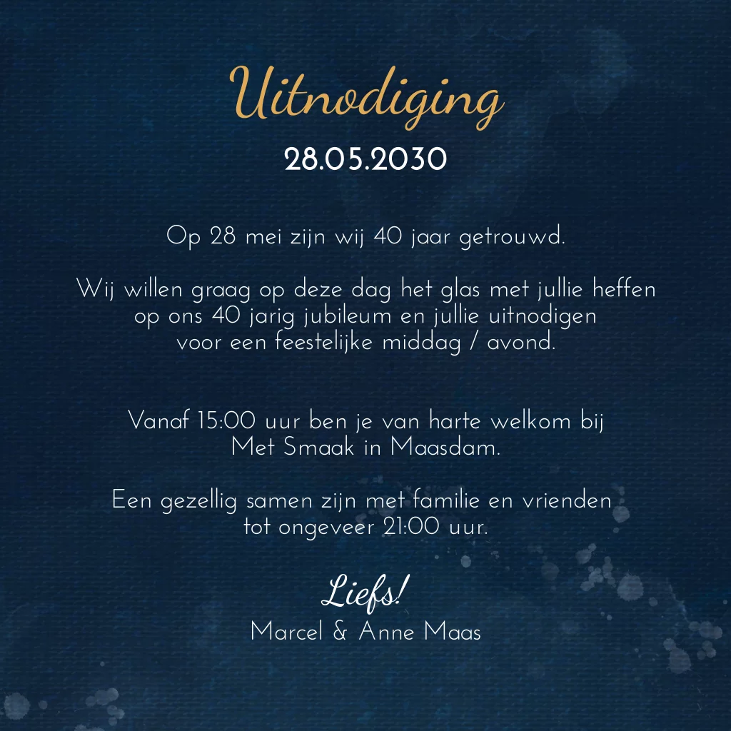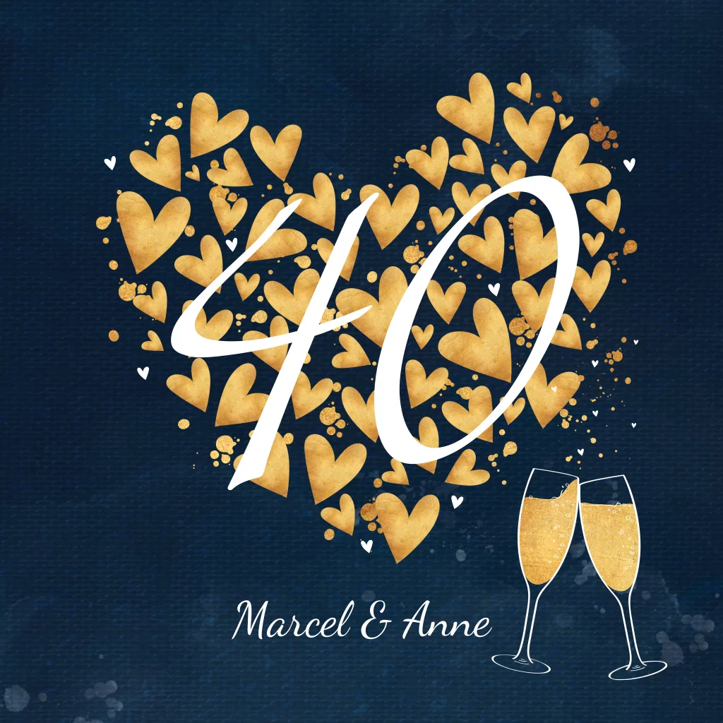 Jubileumkaart 40 jaar huwelijk met gouden hartjes