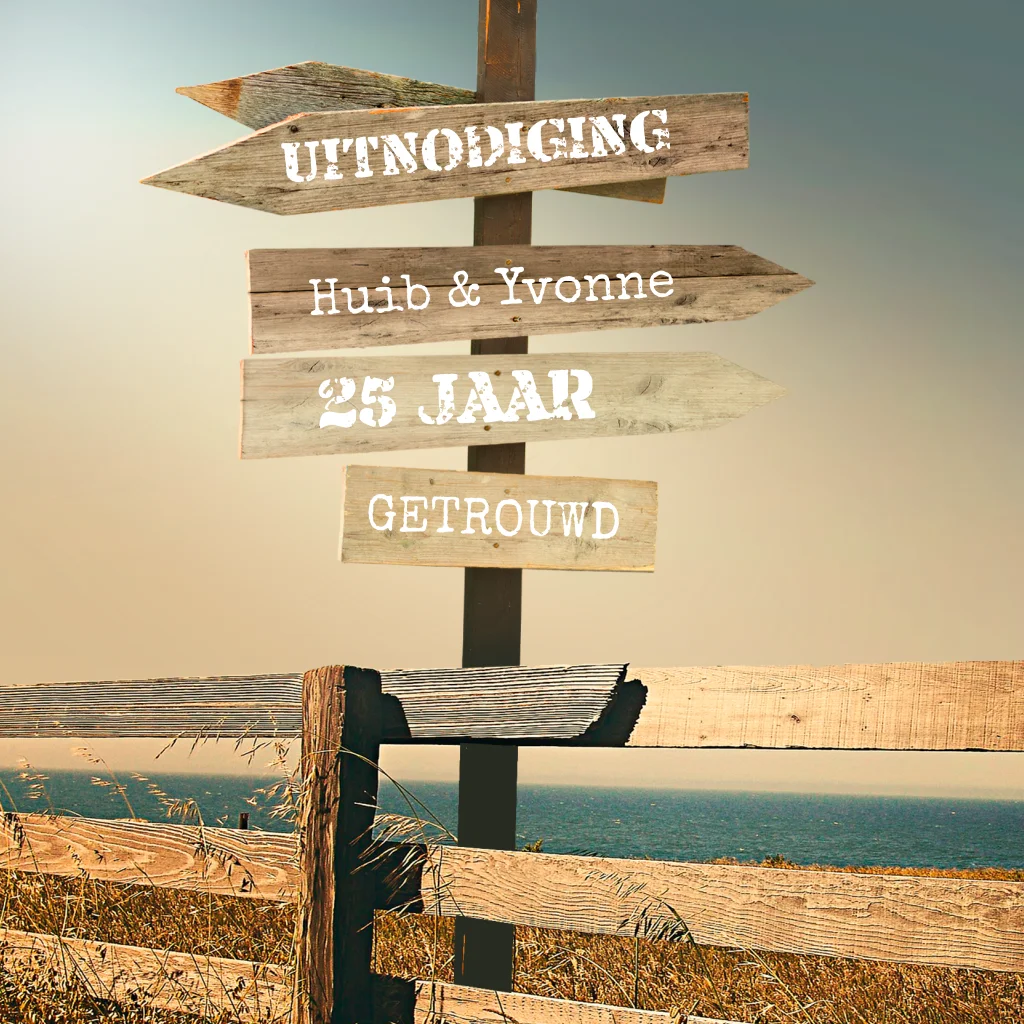 Nodig familie en vrienden uit met deze originele kaart om jullie zilveren bruiloft te vieren met een leuk feestje.