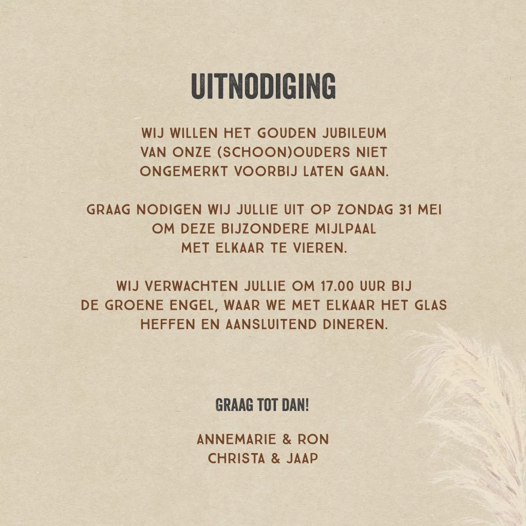 Jubileum uitnodiging 50 jaar getrouwd