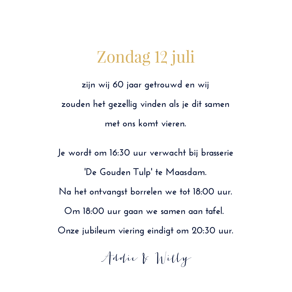 Stijlvolle jubileum uitnodiging voor een zestigjarig huwelijk.