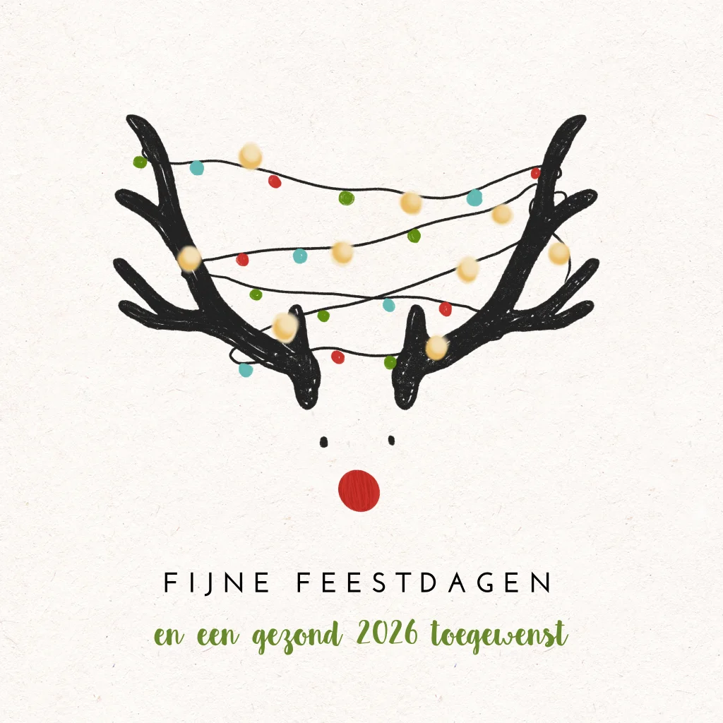 Verras vrienden en familie met deze gezellige kerstkaart met Rudolph rendier versierd met feestelijke kerstlampjes in het gewei.