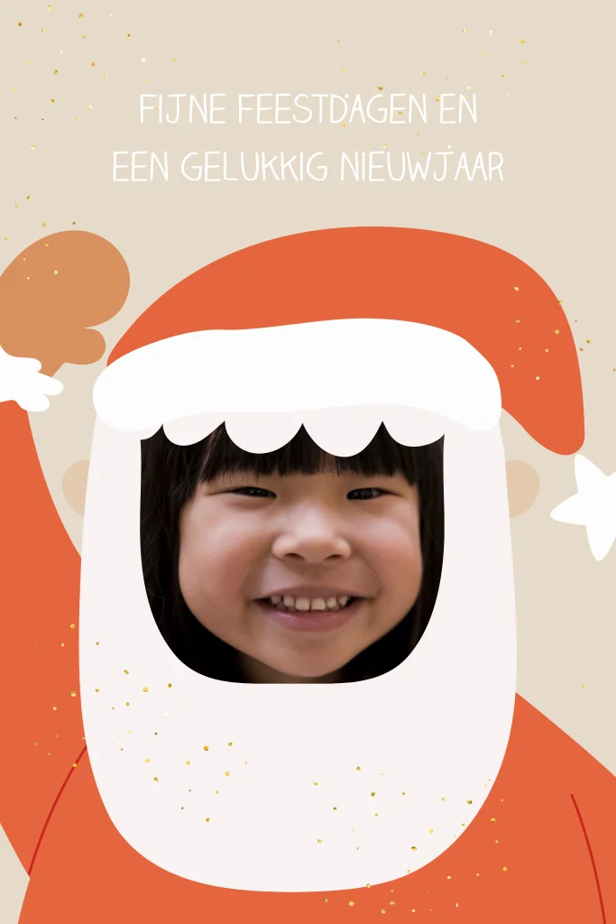 Persoonlijke kerstkaart met foto en vrolijke kerstman. Kies heel eenvoudig illustraties, foto's en afbeeldingen uit onze beeldbank. Voeg eigen foto's en tekst toe en maak een unieke kerstkaart. Lees hier onze tips voor het ontwerpen van het kaartje. Vragen? We helpen je graag!