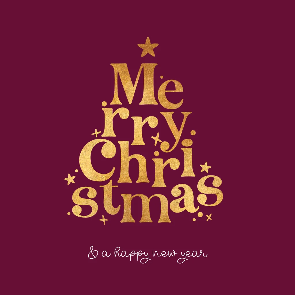 Een prachtige kerstkaart om te sturen naar jouw vrienden en familie. De letters in de vorm van een kerstboom zijn heel origineel! De goudlook zorgt voor een chique uitstraling.