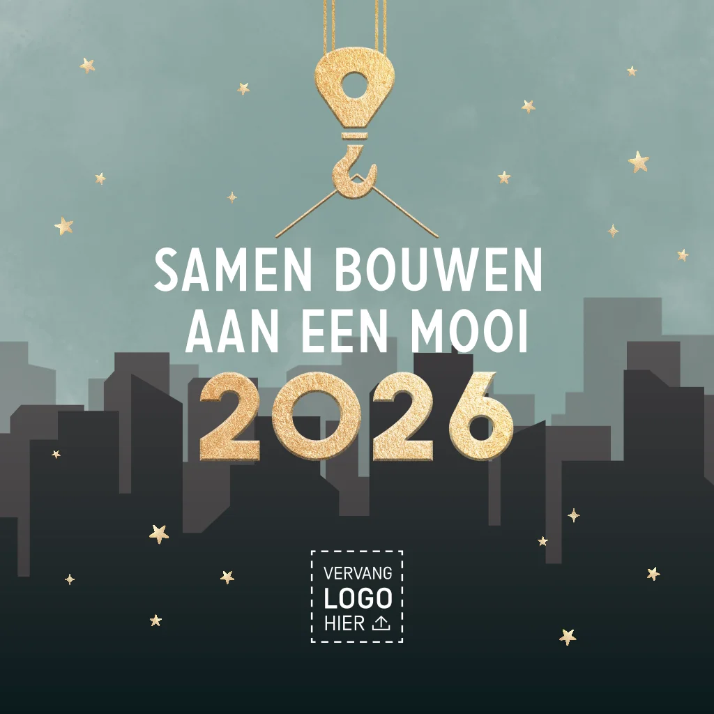 Zakelijke kerstkaart, speciaal voor de bouw ontworpen! Voeg gemakkelijk zelf het logo en een foto van jullie organisatie toe en maak de kaart persoonlijk met een eigen tekst.