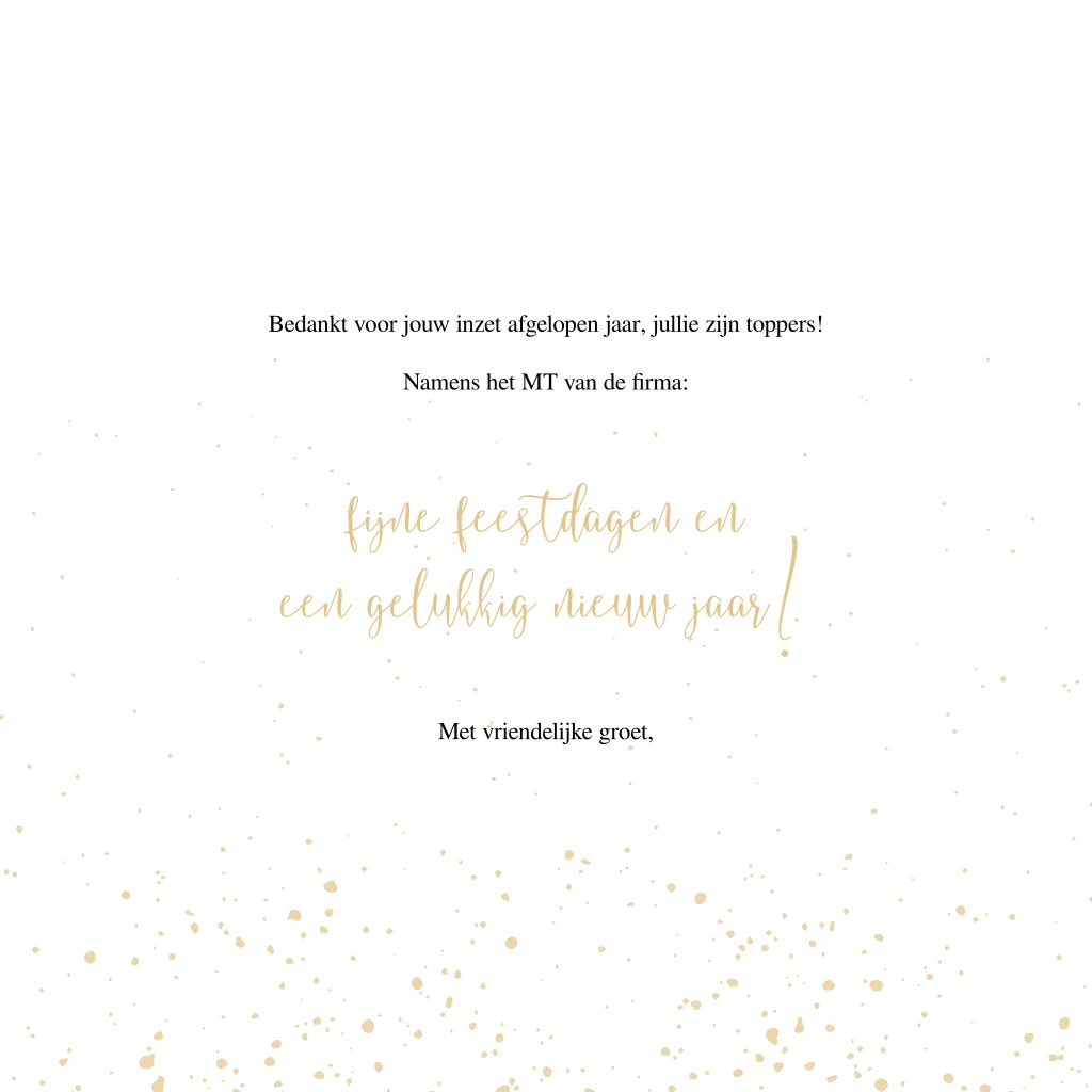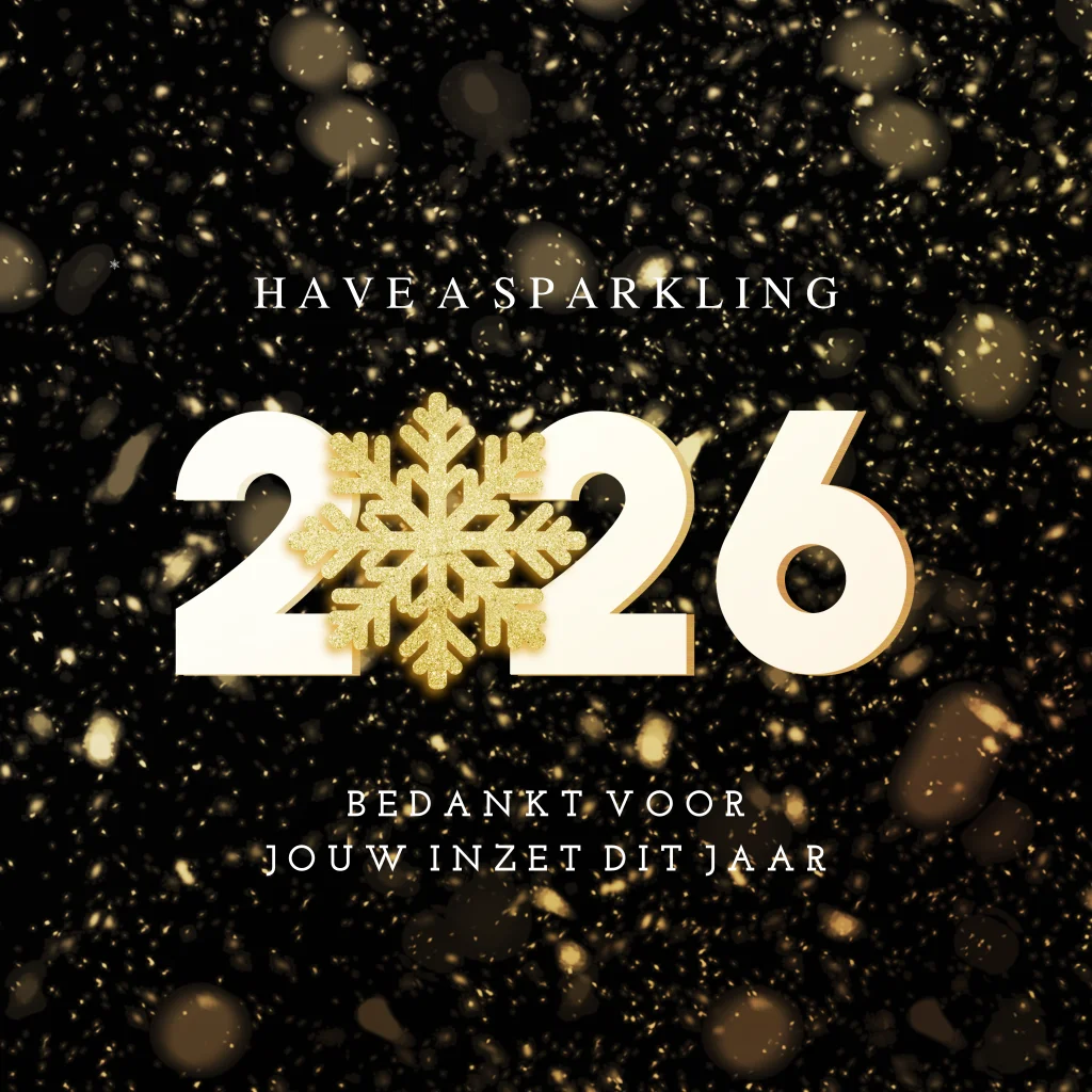 Een feestelijke kerstkaart met een gouden sneeuwvlok en een stijlvolle zwarte achtergrond. Voeg gemakkelijk zelf het logo van jullie organisatie toe en maak de kaart persoonlijk met een eigen tekst.