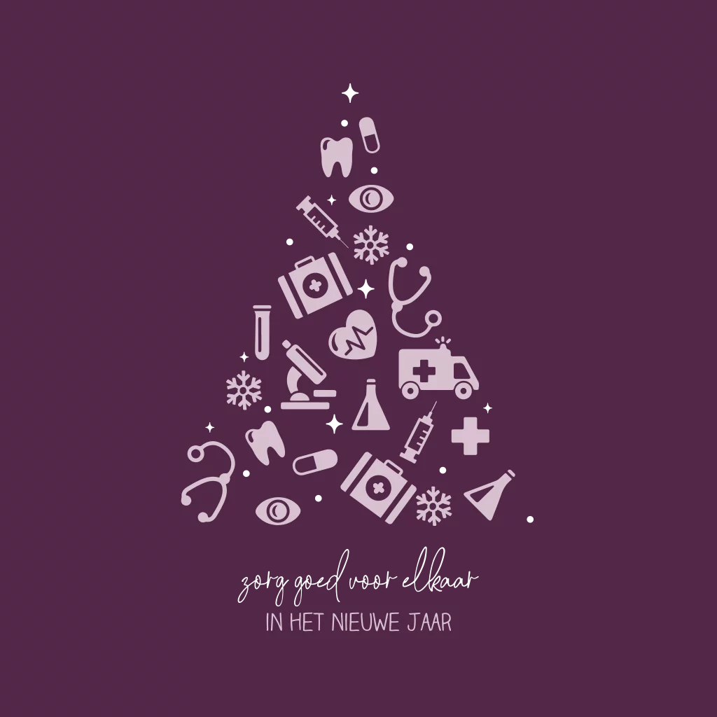 Zakelijke kerstkaart voor zorg met icoontjes in kerstboomvorm